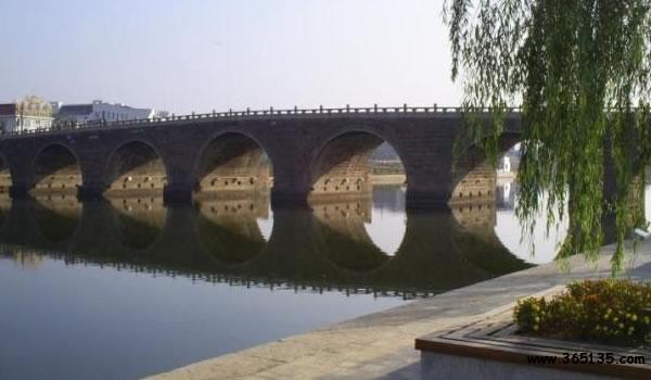 興濟橋:又名七孔橋,俗稱“東門橋”。位于貴池城東濟川河上。明朝萬歷十三年(1585年)池州知府劉孟雷建造,清朝嘉慶二十三年(1818年),池州知府重修,1990年貴池市人民政府全面整修。橋長239米,寬9.4米。整個橋體均用花崗巖石構成,七拱連跨,拱以條石框式縱聯券起。橋墩逆水面壘有水分金剛雁翅。橋面鋪有條石,兩側設有石質望柱、欄板。整個橋梁砌縫相錯,造形別致,布置巧妙,結構穩(wěn)定,是貴池現存最長的古代橋梁,F為安徽省級重點文物保護單位。