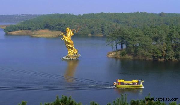 岱山湖:位于肥東縣與全椒縣交界處,東距合肥市區(qū)57km,西距江蘇省城南京市只有96km。岱山湖地屬亞熱帶氣候,溫暖濕潤,年平均氣溫15.7攝氏度,冬暖夏涼,四面青山環(huán)繞,山水交融,平均水深20米,最深處46米。水面有寬有窄,湖邊有灣有港,自成體系,具有開展各類水上項(xiàng)目的理想環(huán)境,湖邊山區(qū)森林覆蓋率90%以上,有400多種植物。岱山湖以其獨(dú)特的湖光山色聞名遐爾,“山不高而層巒疊嶂,水不大而氣象萬千”,勾畫出了岱山湖的景色特征。