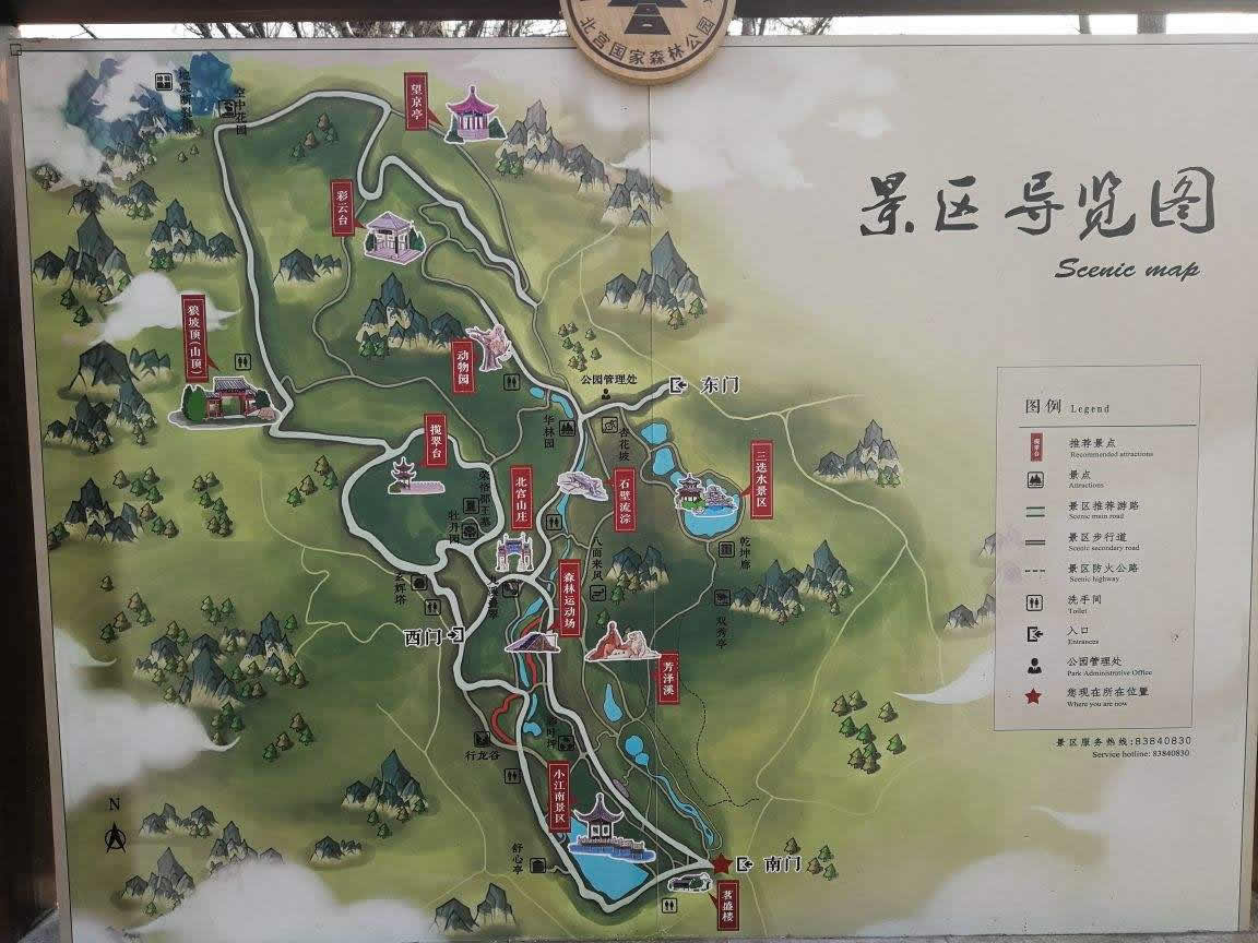 北京北宮國(guó)家森林公園,位于北京市豐臺(tái)區(qū)西北部山區(qū),距北京市中心20公里,是丘陵型自然風(fēng)景區(qū)。北宮因帝王憩地而得名。公園始建于2002年10月,2005年12月被國(guó)家林業(yè)局正式批準(zhǔn)為國(guó)家級(jí)森林公園。公園總面積9.145平方公里,由東部、西部和中部三大景區(qū)和北宮山莊、茗盛樓兩組近10000平方米的配套設(shè)施組成。園內(nèi)有12處亭、廊、閣、塔等人文景觀(guān),以及芳澤溪、小江南、楓林路、樺林溝等15處景點(diǎn)。綠化美化面積3000畝,優(yōu)質(zhì)樹(shù)種21種3.6萬(wàn)株,野生花卉30余種5萬(wàn)余平方米,園內(nèi)植物種類(lèi)達(dá)到253種,形成了首都西部生態(tài)建設(shè)中的亮點(diǎn)。