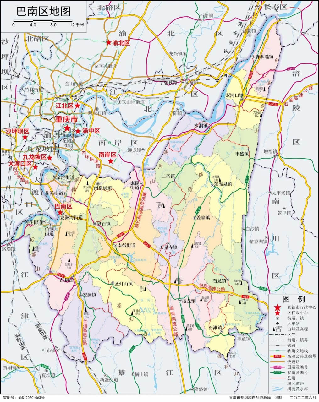 巴南區(qū)轄9個(gè)街道、14個(gè)鎮(zhèn):