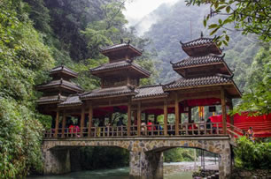 渝黔分界橋又名風(fēng)雨橋,位于黑山谷民俗文化展示區(qū)旁,是渝黔分界橋。一腳踏兩省,兩眼望渝黔。