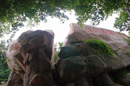 釣鰲臺位于東山縣風(fēng)動石右前側(cè)黃道周紀(jì)念館旁,為一巨大石巖坐山而起,狀如船臺。相傳南宋末年,宋室少帝避元南逃筑“東京”于東山時,一真人坐法于此,忽然間山崩海嘯,“東京”城沉陷入海,真人急念真經(jīng)一腳蹬石升天而遁,故留下一處“仙腳印”。后人作“銅山十八景”詩,稱其為“仙腳獨步騰云漢”。其巖壁東面有民國二十四年湖南漢壽朱熙題鐫:“海晏河清”;下有一口“龍泉”。 釣鰲臺臨海高峙,明時銅山三大書院(崇文書院、東璧書院、南溟書院)筑于周圍,文人士子常登其上,望海騁懷,擊石而歌,以期金榜題名,獨占鰲頭,遂有前人孫堯天鐫“釣鰲臺”于石。