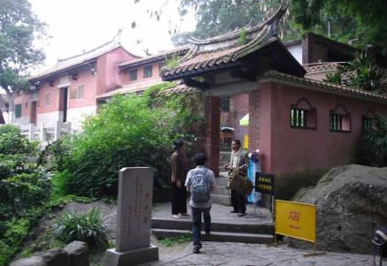 這里巨石峭立,古木參天,近旁的天侶呈瑞,是兩株不同的樹種緊緊地抱在一起,一棵為重陽(yáng)木、一棵是榕樹,樹根相盤,樹身相抱,樹丫纏繞,如膠如漆,歷經(jīng)歷300多年,宛如一對(duì)忠貞不渝的戀人。
