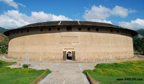 大地土樓群:位于福建省華安縣仙都鎮(zhèn)大地村,距漳州80公里、距廈門147公里,由“國保”二宜樓、南陽樓和“縣保”東陽樓組成,均為蔣姓祖孫在“康乾盛世”所建的大型住宅,是古代中國夯土建筑一大奇跡。樓群受蜈蚣山、大金面山、虎形山、大龜山、獅子山環(huán)抱,其擇址呈現(xiàn)出驚人的幾何學(xué)圖形之美。樓群的建筑平面布局獨具特色,防衛(wèi)系統(tǒng)構(gòu)思獨創(chuàng),構(gòu)造處理與眾不同,建筑裝飾精巧華麗,而且山水環(huán)境宜人、人文景觀豐富,總體布局貫穿以人為本,天人合一的思想。以“圓土樓之王”、“民居瑰寶”華安二宜樓為主體的大地土樓群保留著三千年前商代夯土造屋的建筑技術(shù),它們不僅是“世界上獨一無二的,神話般的建筑模式”也是傳統(tǒng)文化可見、可觸、可感的呈現(xiàn)。