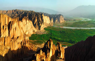 黃河石林生成于今400多萬年的的第三紀(jì)末期和第四紀(jì)初期的地質(zhì)時代,由于地殼運動,形成以黃色的河湖相砂礫巖為主、造型千姿百態(tài)的石林地貌奇現(xiàn)。石林景區(qū)陡崖凌空,景象萬千,峰回路轉(zhuǎn),步移景變,其造型天造地設(shè)、鬼斧神工,猶如雕塑大師之夢幻杰作!坝^音打坐”、“屈原問天”、“木蘭遠(yuǎn)征”、“月下情侶”、“十里屏風(fēng)”“天橋古道”、“一線天”等高達(dá)幾十米甚至上百米的形態(tài)各異、千奇百怪的石柱石筍石林景觀隨處可見。中華民族的母親河——黃河,在這里形成S型的回水灣由南向北進(jìn)入寧夏地界,河的東岸除高聳的石林外,還有背山面河,林木蔥郁的“龍灣綠洲”。專家評價:甘肅黃河石林集中國地質(zhì)地貌之大成,組合優(yōu)異,動靜結(jié)合,國內(nèi)罕見,西北獨有,堪稱中華自然奇觀的一處極具開發(fā)價值、高品位的自然生態(tài)旅游景區(qū)資源。 這里適合休閑度假、獵奇探險、地質(zhì)考察、漂流攀巖等旅游娛樂項目,還可作為西部影視片、科學(xué)幻想片的最佳外景基地。甘肅黃河石林是中國西部旅游觀光的一處勝地,是黃土高原孕育而成的美麗奇葩。