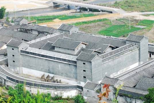 九棟十八井位于韶關(guān)市新豐縣馬頭鎮(zhèn)潭石村(新豐縣馬頭鎮(zhèn)G105國(guó)道旁與大廣高速馬頭出口交叉口西北側(cè)),始建于清康熙年間,占地面積2.5萬(wàn)平方米,總建筑面積1.5萬(wàn)平方米。九棟十八井為三進(jìn)院落四合院式布局,很有氣勢(shì)。建成橫三棟、縱三棟,名謂九棟,共有一百六十六間房屋;每三棟各有六口天井,共為十八井,故稱九棟十八井。建筑群由門樓、前院排屋、圍墻、主體建筑連接圍合而成,并內(nèi)設(shè)有書屋(已被毀)、水磨房、碾米房、織布房等。硬山頂門樓北向,門上石匾額陽(yáng)刻“棣萼樓”;主體建筑群由三組建筑并列組成,中心組群為祖祠,左右兩組為支祠。三組建筑平面規(guī)制基本相同,是以廳堂為軸心,左右各配置天街、串屋,天街均向正面開門;祖祠正面兩角各設(shè)一角樓,二層,鍋耳山墻;左右支祠外角各設(shè)一角樓,二層,山字山墻。祖祠、支祠廳堂均三進(jìn),兩支祠進(jìn)深略短。其上中下三廳均為抬梁式木構(gòu)架,木構(gòu)件多有精美雕飾。該圍屋規(guī)模龐大,布局嚴(yán)謹(jǐn),外觀雅致,工藝精細(xì),雕飾精美,是新豐境內(nèi)保存較完整的客家圍屋,具有較大的歷史、建筑工藝等研究?jī)r(jià)值,2012年列入新豐縣不可移動(dòng)文物名錄。