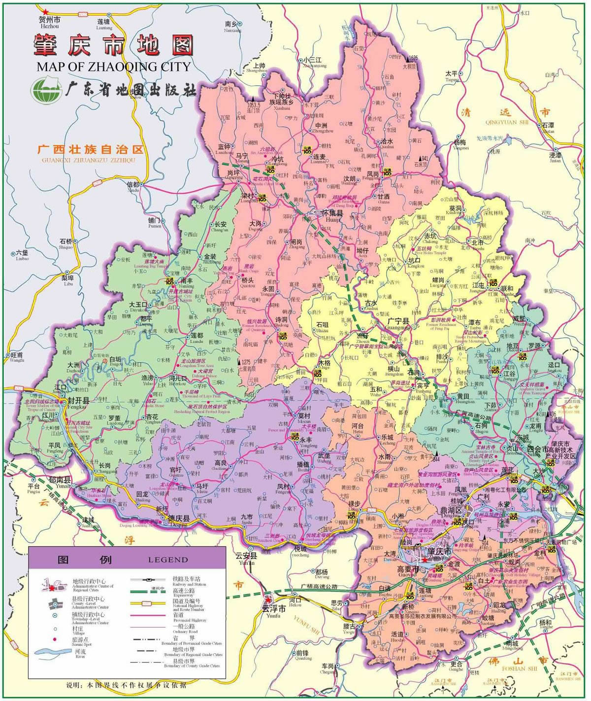 肇慶市轄3個(gè)市轄區(qū)、4個(gè)縣,代管1個(gè)縣級(jí)市: