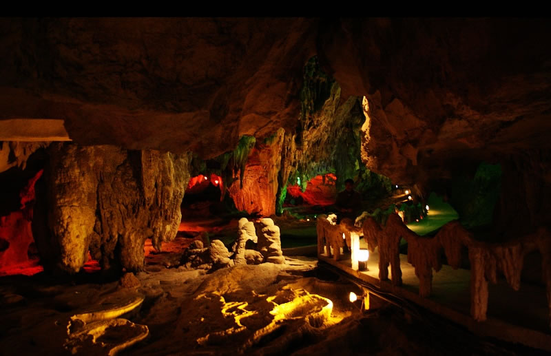 樂業(yè)鳳山世界地質(zhì)公園,總面積930平方公里,已發(fā)現(xiàn)大小天坑30個,是世界上最大的天坑群。天坑群中以大石圍天坑規(guī)模最大,深度和容積居世界第二;坑底森林面積10.5萬平方米,居世界第一。園區(qū)內(nèi)發(fā)現(xiàn)洞穴近百個,鳳山江州地下長廊洞穴系統(tǒng)長37.9公里,為中國第三長洞穴;園區(qū)內(nèi)洞穴廊道巨大,有10000平方米以上的洞穴大廳24個,為世界上洞穴大廳最為密集的區(qū)域,其中以羅妹蓮花洞群為主洞群區(qū)域;在冒氣洞區(qū),陽光大廳最高300米,是世界上最高的洞穴廳堂;羅妹洞有296個蓮花盆,最大直徑達(dá)9.2米,被稱為“蓮花盆之王”;鴛鴦洞有千姿百態(tài)的石筍千余根,其中兩根石筍分別高29米和36米,進(jìn)入中國最高大石筍之列。