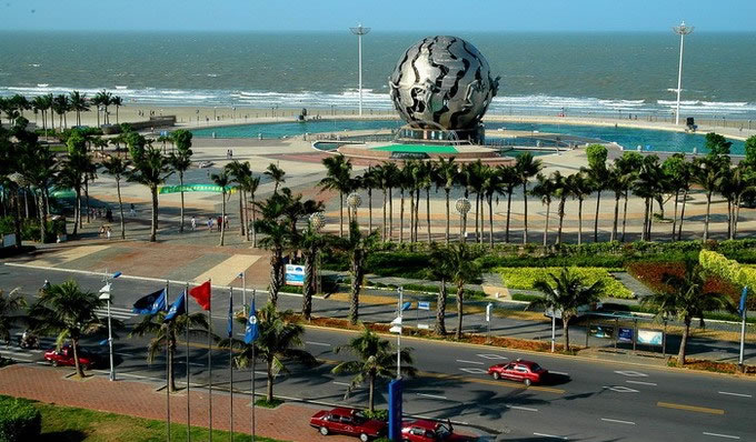海灘公園,是銀灘國家旅游假區(qū)的重要組成部分,位于北海市中心以南十公里的北海銀灘中部。公園由三部份組成,東區(qū)設(shè)有琴、棋、書、畫院.中間是海灘、海上活動區(qū);西區(qū)是海洋生物館、兒童戲水池、大型露天舞池等組成的游樂區(qū),可同時容納游客6萬多人。 [21]鋼塑“潮”位于銀灘旅游度假區(qū)的海灘公園內(nèi),它是由地道的北海人、中央美術(shù)學(xué)院副教授魏小明設(shè)計,由中房北海公司投資一千多萬元,用兩個月零15天建成。整座雕塑以象征一顆大明珠的球體和七位裸體少女護(hù)衛(wèi)球為主體,并由安裝有5200個噴頭的音樂噴泉組成。雕塑高23米,鋼球直徑20米。巨大的鋼球是用不銹鋼鏤空制成。整座建筑以大海、珍珠、潮水為背影。
