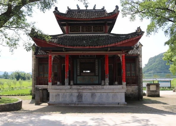 位于鐘山縣城西面公安鎮(zhèn)大田村,距縣城約十公里,此戲臺建于清光緒四年(即1878年),為磚、石、木結構,呈凸字形,通高10余米,由前臺和后臺 組成,前臺面寬6.37米,深5.5米;后臺寬10.12米,深3.6米;基高1.8米。整座戲臺青石青磚,雕工極為精美圓潤,八柱梁構架,八角藻井復 頂,鼓石墊柱,青磚砌墻,青石為基,基旁雕以八仙賀壽,鑿雙龍以戲珠,臺上鏤兩虎以扶角,嵌二獅以呈瑞,后屏風飾以山川樓閣,彩鳳仙鶴等木雕,工藝精湛, 構圖和諧。戲臺除古樸典雅、雄偉壯觀,且符合力學、聲學原理,整座戲臺屬水口廟附屬建筑,隱映于古樹秀竹之中,清澈的溪流環(huán)繞其中,整個環(huán)境優(yōu)雅別致,清 靜恬適,為廣西不可多見的古戲臺之古代建筑之一。1981年列為廣西壯族自治區(qū)重點文物保護單位。該戲臺所處村莊大田村也是一個很有特點的村莊,老屋、古 榕、古樟在池塘的映襯下顯得特有韻味。