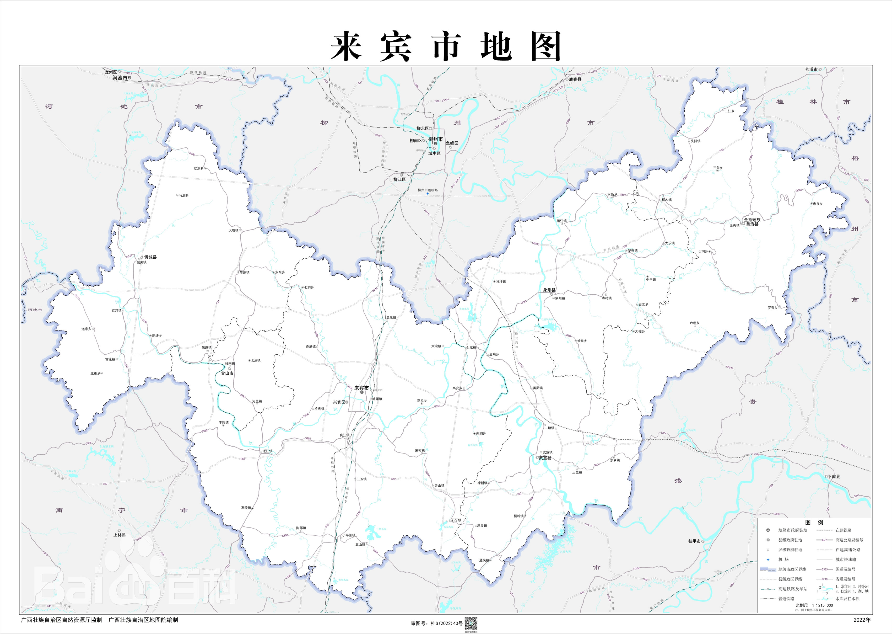 來(lái)賓市轄1個(gè)市轄區(qū)、4個(gè)縣,代管1個(gè)縣級(jí)市: