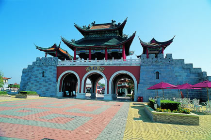 該區(qū)的建筑風格充滿了中國古代特色,有長城式的城墻及亭臺樓閣等建筑造型。中國城內主要的游樂設施有: