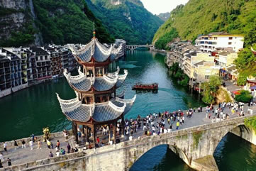 舞陽(yáng)河由龍王峽、諸葛峽、西峽組成,有小三峽之稱(chēng),以高峽平湖、瀑泉飛流、喀斯特為主體。