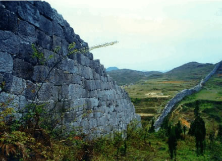 經(jīng)過(guò)600多年風(fēng)雨侵蝕,露出部分的石面全部呈青黑色,與城垣周?chē)|(zhì)各異。據(jù)專(zhuān)家考證,砌筑城垣所用石料,全從山下采集,鑿成料石,然后一塊一塊運(yùn)上山,整個(gè)工程浩大。