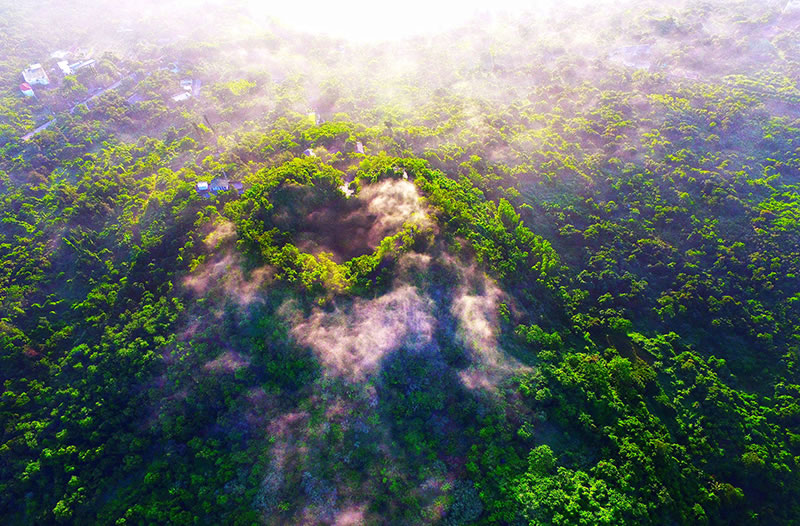 雷瓊海口火山群世界地質(zhì)公園,4A級景區(qū),世界地質(zhì)公園,國家地質(zhì)公園。位于?谑形髂鲜芥(zhèn),屬地塹一裂谷型基性火山活動地質(zhì)遺跡,也是中國為數(shù)不多的全新世(距今1萬年)火山噴發(fā)活動的休眠火山群之一,具有極高的科考、科研、科普和旅游觀賞價值。 地質(zhì)遺跡主體為40座火山構(gòu)成的第四紀(jì)火山群。園區(qū)在火山錐、火山口及玄武巖臺地上發(fā)育熱帶雨林為代表生態(tài)群落,植物有1200多種,果園與火山景觀融為一體,為熱帶城市火山生態(tài)的杰出代表?偯娣e108平方公里。主要景點有馬鞍嶺、雙池嶺、仙人洞、羅京盤等。