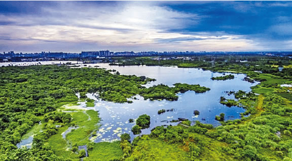 海口五源河國家濕地公園,南起永莊水庫,北至五源河河口海域,主要包括永莊水庫、五源河及河口海域3個濕地單元,規(guī)劃面積1300公頃(1.95萬畝),其中濕地面積958公頃(1.44萬畝),有4個濕地類及10個濕地型,濕地率為73.69%。公園內(nèi)共有野生維管束植物96科318屬427種,其中水蕨為國家二級保護(hù)植物。共有野生脊椎動物25目66科154種,其中國家Ⅱ級重點保護(hù)野生動物多達(dá)11種。五源河上游的永莊水庫及周邊大面積的火山熔巖濕地和灌叢沼澤區(qū),是?谑袇^(qū)內(nèi)自然生態(tài)保存較為完好的區(qū)域,擁有城市內(nèi)稀缺的動物棲息地和植被生態(tài)環(huán)境。