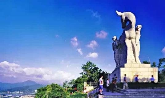 鹿回頭山頂公園位于三亞市南部3千米的海邊小山上,伸向南海、狀似坡鹿。這里三面臨海,四季山青,以其美麗的神話傳說聞名于世。主峰海拔275.1米。鹿回頭山頂已建設(shè)成一座美麗的山頂公園,并根據(jù)這個美麗的傳說在山上雕塑了一座高12米,長9米,寬4.9米的巨型雕像。三亞市也因此被人們稱為“鹿城”。