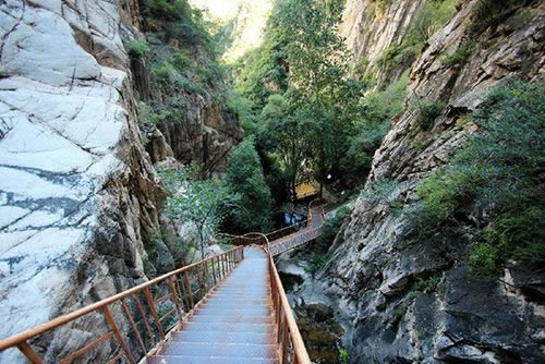 被譽(yù)為“天下第一峽”的百里峽是野三坡獨(dú)具特色的景區(qū)之一。在“雙崖依天立,萬仞從地劈”的百里“構(gòu)造嶂谷”中,不僅有“老虎嘴”“一線天”“回首觀音”“天生橋”,還有涌泉飛瀑,跌宕聲聲的峽谷溪流和生性好動的小松鼠及山巔枝頭的鳥鳴。生態(tài)環(huán)境原始自然。峽谷內(nèi)旅游設(shè)施與自然相協(xié)調(diào),安全環(huán)保。置身其谷,步游路隨山峰而轉(zhuǎn),溪水繞游路而行,山水相依,植被茂密,空氣清新,世間無比。游在其中,頭頂絕壁萬仞、藍(lán)天一線;腳踏鵝卵石甬路,還可足療保健;路邊泉水叮咚、碧水清潭;身旁高山飛瀑、澗流潺潺;崖壁上灌木成林、青檀倒掛懸,獨(dú)根草、野海棠和羊齒蘭猶如墨彩涂于壁間,密如綠毯。