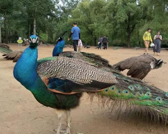 世界瀕危野生動(dòng)物綠孔雀在秦皇島野生動(dòng)物園不斷繁衍生息,已從1949年的20余只繁育到80只,成為中國(guó)最大的綠孔雀群。綠孔雀俗名:孔雀、越鳥(niǎo)、爪哇綠孔雀;體型最大的雉科鳥(niǎo)類,體重7000-8000克。雄鳥(niǎo)全長(zhǎng)約140厘米,雌鳥(niǎo)約100厘米。雄鳥(niǎo)體羽翠藍(lán)綠色,下背閃紫銅色光澤。頭頂有一簇直立的羽冠。尾上覆羽延伸成尾屏,可達(dá)1米以上,約有百余枚,并有紫、黃、藍(lán)、綠多種顏色構(gòu)成的眼狀斑紋,形成孔雀特有的尾屏。開(kāi)屏?xí)r顯得異常艷麗、光彩奪目。雄鳥(niǎo)尾特長(zhǎng),頭部冠羽豎起,頸、上背及胸部具綠色光澤,尾上覆羽特長(zhǎng)并具閃亮眼斑而成尾屏。雌鳥(niǎo)羽色以褐色為主,帶綠色輝光。無(wú)尾屏。