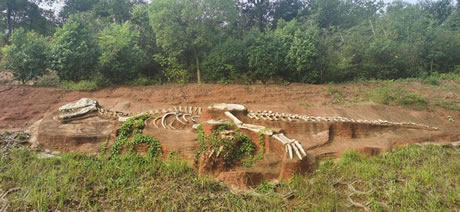 南陽西峽恐龍遺址,屬于白堊紀斷陷盆地沉積,已發(fā)現(xiàn)的蛋化石歸于8科11屬15種?铸埖斑z址的蛋化石層是西坪――丹水盆地的最高層位,已暴露的蛋化石達1000多枚。在它的下部地層至少還有16個產(chǎn)蛋層,現(xiàn)已確定蛋化石分別歸于6科9屬13種。特別是西峽巨型長形蛋和戈壁棱柱形蛋,世界稀有罕見,是西峽蛋化石的標志。西峽出土的恐龍蛋化石數(shù)量之大、種類之多、分布之廣、保存之好堪稱“世界之最”。大量的鴨嘴龍、禽龍、原角龍、肉食龍等恐龍骨骼的發(fā)現(xiàn),又為西峽蛋化石增加新的內(nèi)容。西峽出土的恐龍蛋化石數(shù)量之大、種類之多、分布之廣、保存之好,堪稱“世界之最”。西峽恐龍遺跡神秘的面紗隨著恐龍骨骼化石的陸續(xù)發(fā)現(xiàn)被逐步揭開。