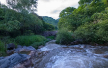 三疊峽谷:珍珠潭與上游的貞女潭、玉淵潭合稱為三疊峽谷,三瀑疊繞,群潭相連,巧奪天工。相傳當(dāng)年劉秀被王莽追趕到這個(gè)地方,已是人困馬乏,口干舌焦,劉秀便俯身喝水,將飲之時(shí),河槽忽然,低落下去,又俯身欲飲,河槽又低落下去,這時(shí),遇見(jiàn)一位名叫泉鳩的姑娘,見(jiàn)劉秀喝水困難,便用雙手掬起——捧水遞上去,劉秀這才喝到水。泉鳩姑娘手起,河槽又落下去,三次低落形成了三個(gè)瀑布深潭。此一遇,劉秀和泉鳩姑娘一見(jiàn)鐘情,劉秀東去后,泉鳩姑娘長(zhǎng)年在潭邊守候。