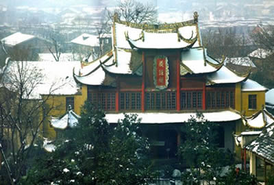 北院的主體建筑是藏經(jīng)樓。藏經(jīng)閣1920年至1922年興建,是一座兩層五開問的樓閣式建筑,高約25米,頂為獸頭大脊,魚角搬爪,斗拱飛檐,古樸玲瓏,當(dāng)面為四柱通天,雙鳳朝陽,五龍戲珠。整個建筑、門扇窗牖,涂朱繪彩,刻畫鏤雕,精巧壯觀,金碧輝煌,是武漢市唯一一座磚木結(jié)構(gòu)的古建筑物。這里珍藏著許多佛教文物,除《藏經(jīng)》外,還有佛象、法物、石雕、木刻、書畫碑帖及外文典籍等。