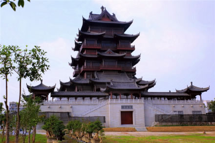 “圓通”一詞來源于佛典中的“圓通菩薩”該建筑于2009年上半年破土動工,是由宮殿式石臺座和紅木榫卯結(jié)構(gòu)組合而成,其風(fēng)格為內(nèi)五層外三層四滴水樓閣式建筑,是中國大型傳統(tǒng)木結(jié)構(gòu)建筑之一。此建筑基座長寬各60.8米,占地4139平方米,高60余米。除了將請進25尊圓通菩薩外,此前運至歸元寺的一塊重達3.2噸的“鎮(zhèn)寺之寶”和田玉將被打造成一尊2噸重的彌勒佛像一并在這里展出。2011年8月26日圓通閣已圓滿舉辦“上梁”儀式,預(yù)計在2012年完工。
