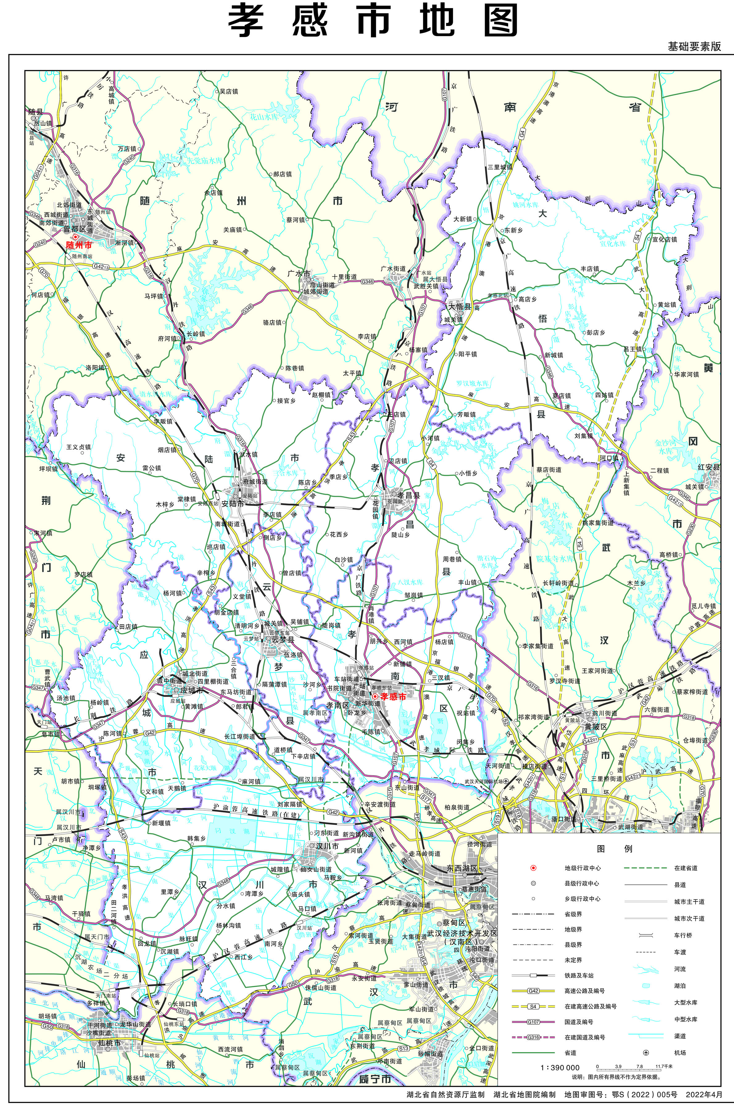 孝感市轄1個(gè)市轄區(qū)、3個(gè)縣、代管3個(gè)縣級市: