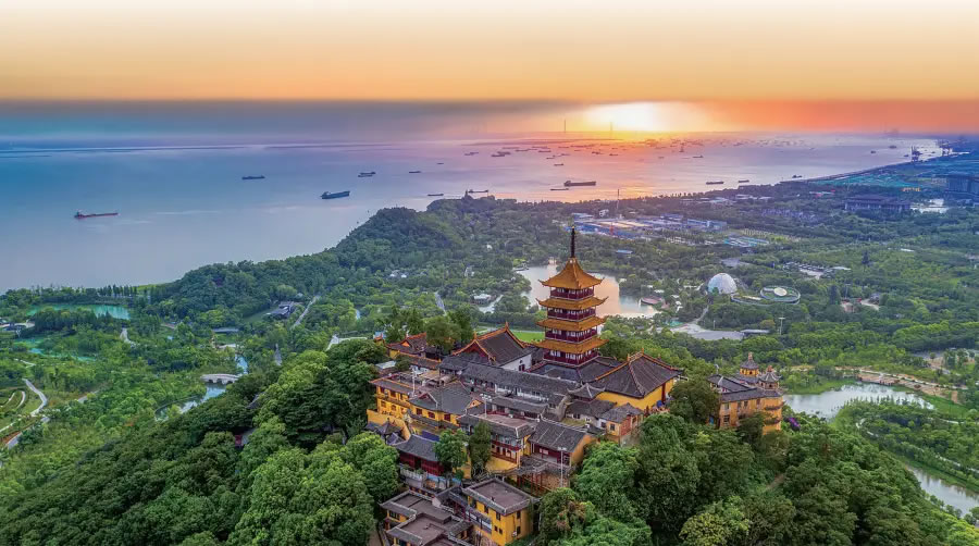 南通狼山則是由海溯江的第一座名山,被稱為江海第一山。山高106.94米。狼山是佛教西方三圣之一的大勢至菩薩的道場,山上還供奉著惟一身披龍袍的大圣菩薩,狼山位列佛教八小名山之首。