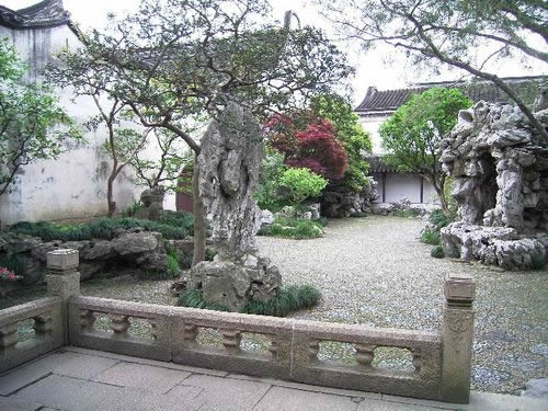 網(wǎng)師園分三部分,境界各異。東部為住宅,中部為主園。網(wǎng)師園按石質(zhì)分區(qū)使用,主園池區(qū)用黃石,其他庭用湖石,不相混雜。突出以水為中心,環(huán)池亭閣也山水錯(cuò)落映襯。西部為內(nèi)園(風(fēng)園),占地約1畝。北側(cè)小軒三間,名“殿春簃”。軒北略置湖石,配以梅、竹、芭蕉成竹石小景。軒西側(cè)套室原為著名畫(huà)家張大千及其兄弟張善孖的畫(huà)室“大風(fēng)堂”庭院假山,采用周邊假山布局,東墻峰洞假山圍成弧形花臺(tái),松楓參差。南面曲折蜿蜒的花臺(tái),穿插峰石,借白粉墻的襯托而富情趣,與“殿春簃”互成對(duì)景。花臺(tái)西南為天然泉水“涵碧泉”。北半亭“冷泉亭”因“涵碧泉”而得名。亭中置巨大的靈壁石。