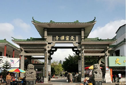 天寧古寺有過極盛的年華,隨著滄桑的變遷,屢經(jīng)摧殘,古寺蕩然無(wú)存。至1985年9月僅存一座高不到 二米、面積不足18平方米,風(fēng)雨飄搖的觀音間,神龕上只有一張圖像供游客參拜,當(dāng)年61歲的萬(wàn)仁英同志,誠(chéng)虔地來(lái)此剃發(fā)為尼,授法號(hào)叫釋順因,并將她多年的積蓄六千元贊助寺內(nèi)作經(jīng)費(fèi)。在古寺住持垂范下,用了七年時(shí)間,建成了一座氣派軒昂,規(guī)模宏偉的綜合性寺廟。建筑面積達(dá)五千平方米,屹立在灣里區(qū)南端,接待八方香客和游人。