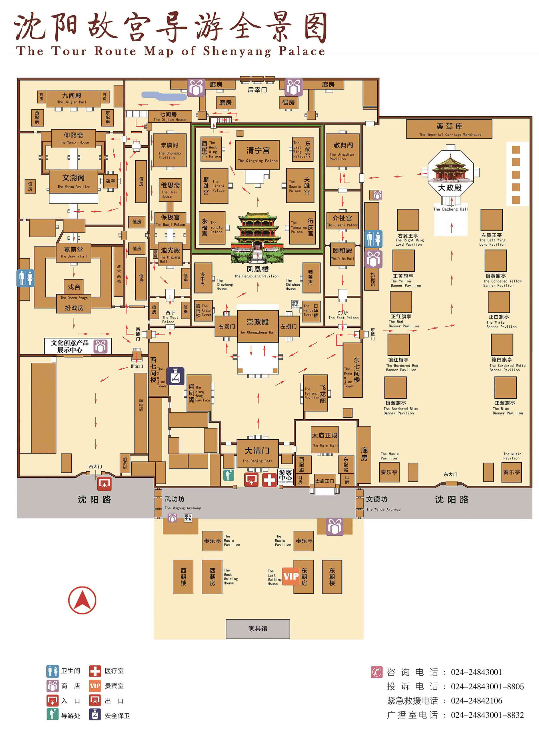 沈陽故宮占地面積六萬多平方米,有古建筑114座,500多間,保存完好,是一處包含著豐富歷史文化內(nèi)涵的古代遺址。在宮廷遺址上建立的沈陽故宮博物院是著名的古代宮廷藝術(shù)博物館,藏品中包含十分豐富的宮廷藝術(shù)品。它以獨(dú)特的歷史、地理?xiàng)l件和濃郁的滿族特色而迥異于北京故宮。沈陽故宮那金龍?bào)粗拇笳睢⒊缯,排如雁行的十王亭、萬字炕口袋房的清寧宮,古樸典雅的文朔閣,以及鳳凰樓等高臺建筑、“宮高殿低”的建筑風(fēng)格,在中國宮殿建筑史上絕無僅有。