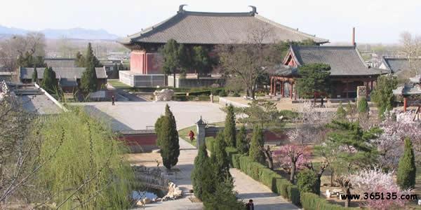 奉國寺:坐落在遼寧省義縣城內(nèi),始建于遼開泰九年(公元1020年)因殿內(nèi)塑有七尊大佛,又俗稱大佛寺。奉國寺由山門、牌坊、無量殿、鐘亭、碑亭、大雄殿、西宮禪院等古建筑構成,占地3萬平方米,是一座宏偉壯觀,保存較為完整的古代寺院。大雄殿位于中軸線的北端,面寬9間,通長55米,進深5間,通寬33米,總高度24米,建筑面積1800多平方米。它不僅是國內(nèi)遼代遺存最大的木構建筑,因其大雄殿規(guī)模面積全國最大,又堪稱中國寺院第一大雄寶殿。