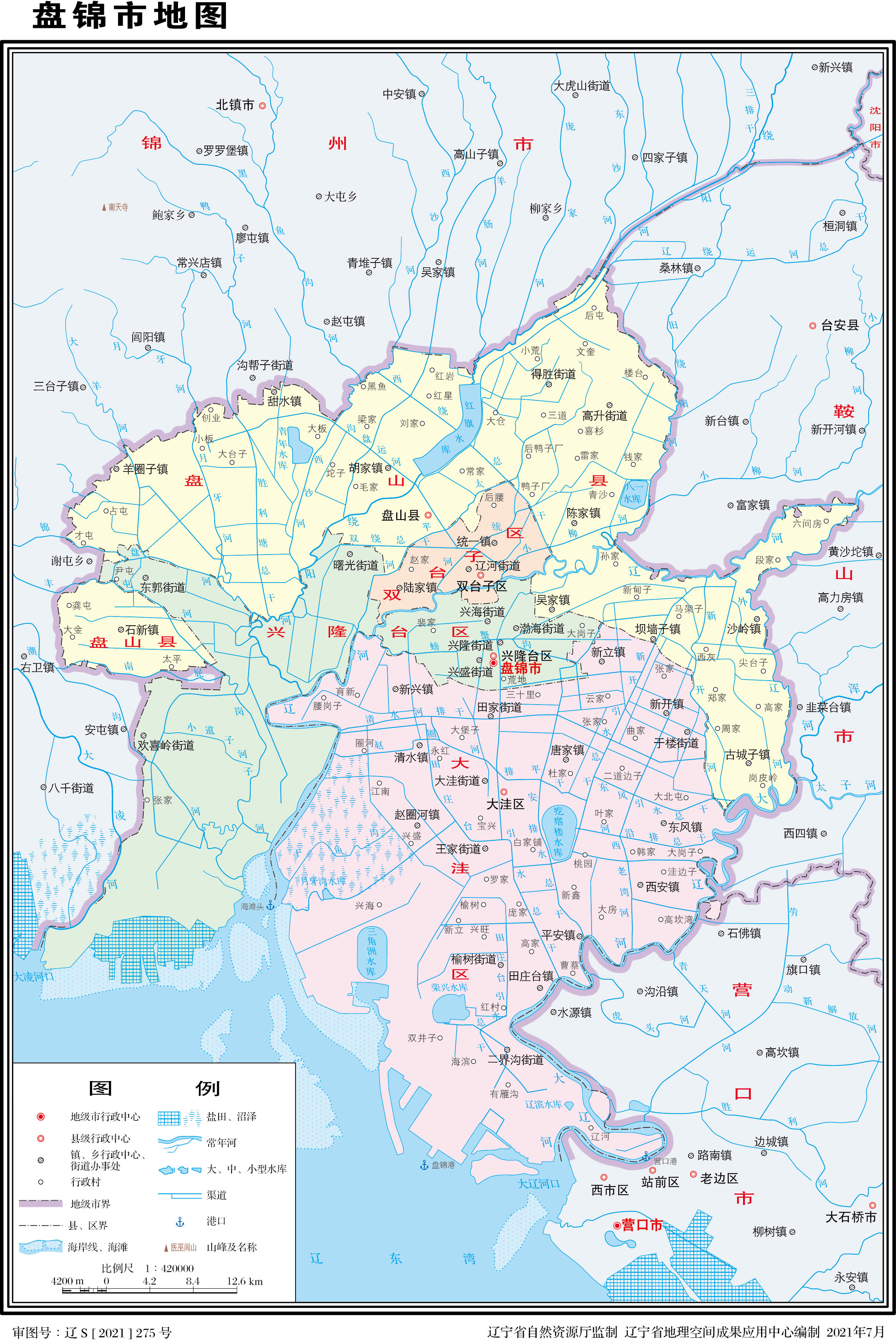 盤錦市轄3個區(qū)、1個縣: