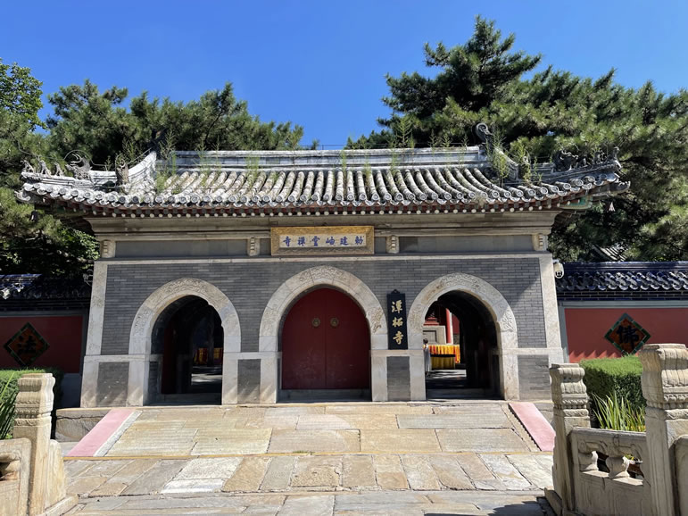潭柘寺,位于北京市門頭溝區(qū)東南部的潭柘山麓。是北京有記載的年代最久遠(yuǎn)的寺廟。因寺以龍?zhí)逗丸蠘渎劽,俗稱潭柘寺。潭柘寺始建于西晉懷帝永嘉元年(307年),初名嘉福寺。寺內(nèi)現(xiàn)存建筑多為明清遺物。潭柘寺位于寶珠峰南側(cè)坡地上,坐北朝南,寺內(nèi)占地0.025平方千米,寺外占地1.12平方千米,加上周圍由潭柘寺所管轄的森林和山場,總面積達1.21平方千米以上。寺內(nèi)建筑依山勢而建,北高南低。全寺建筑共分為中路、東路、西路和塔院等幾大部分,構(gòu)成潭柘寺的核心建筑群體。潭柘寺是北京早期佛教文化的發(fā)祥地之一,北京民間有“先有潭柘寺,后有幽州城”的諺語。其建筑規(guī)模亦當(dāng)屬京城寺院之最。