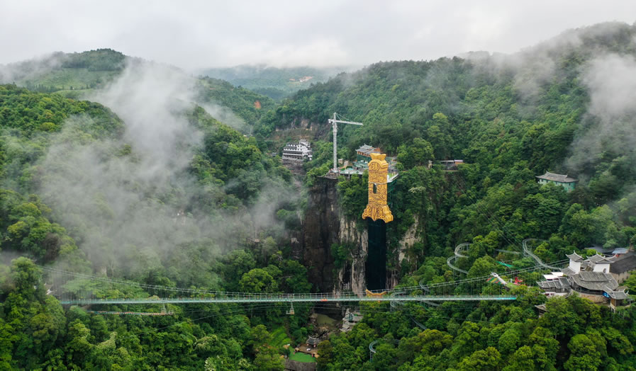 - 亮點(diǎn):全國首座雙層玻璃橋,全長268米,垂直落差148米,上層透明玻璃,下層5D特效玻璃(含碎裂效果)。