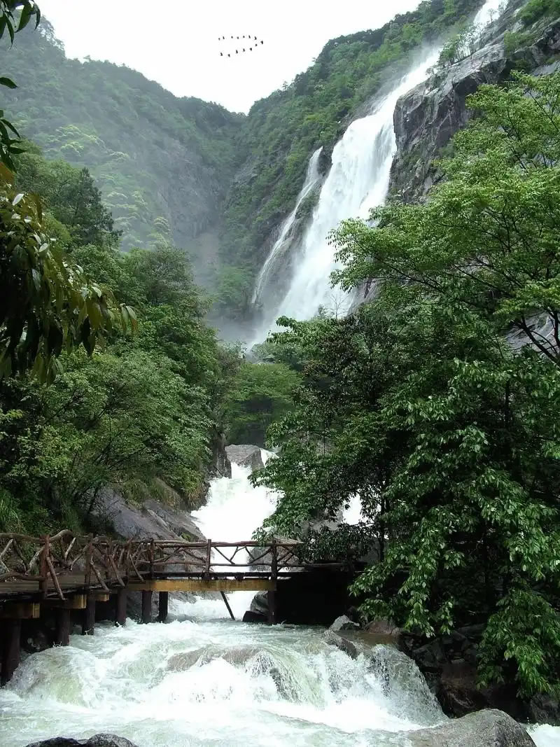 - 特色:大鄣山臥龍谷是一處景觀價值獨特、完全保持原始風貌的高山峽谷景區(qū),被譽為“江南第一奇谷”。景區(qū)內(nèi)主峰擂鼓尖海拔1629.8米,擁有壯觀的瀑布群、彩池和原始次森林,四季景色各異,是金庸筆下的人間美景世外桃源。