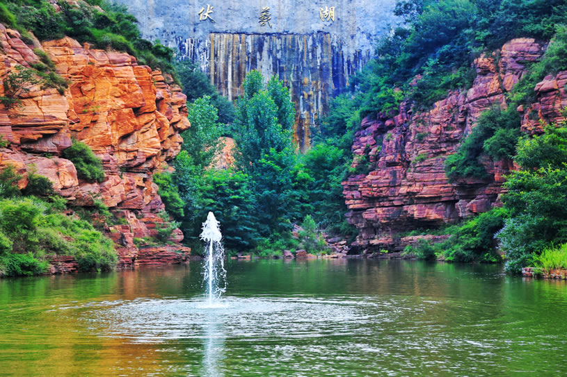 伏羲大峽谷位于河南省鄭州新密市西北20公里的伏羲山旅游區(qū)內(nèi),是一條以典型紅巖嶂谷群地質(zhì)地貌景觀為主的峽谷景區(qū)。伏羲山屬于嵩山山脈向東延伸部分,主峰五指嶺1108.5米,橫跨伏羲山全境。景區(qū)氣候溫潤,四季分明,年均溫11.6℃,比市區(qū)低2.7℃;景區(qū)植被茂密、物種繁多、綠樹掩映、花木扶疏,有千年以上的古樹名木數(shù)十棵,其中具有“活植物化石”之稱的古亢樹,是伏羲山特有的樹種。景區(qū)終年流水不斷,谷底飛瀑、跌水、深潭、平湖,清幽涼爽,姿態(tài)萬千,風景秀美,巨大的巖石像被打磨過似的,平坦如鏡,潔凈光滑,游客可以在這里享受世間少有的“巖石浴”;峽谷兩岸巖石兀立,巖壁上天然石梯懸于空中,形形色色的人物以及動物的形象惟妙惟肖?傄(guī)劃面積共5.3平方公里,以伏羲文化和紅石大峽谷為主要特色,分為上下兩部分:上部以臥龍臺、文化隧道、望鄉(xiāng)臺、八卦臺、萬年栗、栗仙神祠、女媧補天處、神龜折足、五色石等景點為主,全面反映伏羲文化的形成、發(fā)展、傳播以及對后世的影響;下部以黃龍?zhí)丁ⅫS龍廟、簸萁潭、立龍鍋潭、貫云瀑(龍影瀑)、八分潭、烏龜拜壽、九龍?zhí)、圖騰柱、馬蹄溝、沐云梯、等景點為主,深切感受峽谷風光,體驗自然鬼斧神工。