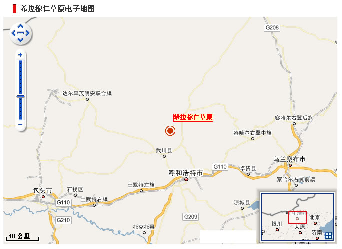希拉穆仁草原是內(nèi)蒙最早開壁的草原旅游點(diǎn),在呼和浩特以北100公里處,海拔1700米,丘陵起伏,芳草萋萋,空氣清新,一派草原風(fēng)光。晝夜溫較大,盛夏之夜,也涼爽似秋。