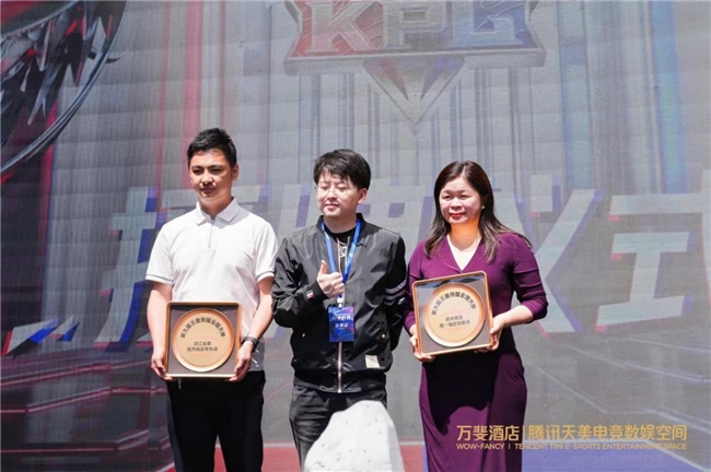 騰訊互娛天美L1工作室王者榮耀全國大賽負責人唐然上臺,授予了萬斐酒店騰訊天美電競數(shù)娛空間第九屆王者榮耀全國大賽——浙江省賽官方指定舉辦方,以及杭州賽區(qū)唯一指定總賽點的榮譽。由西湖文旅旅游發(fā)展有限公司副總經(jīng)理任亮,和上海歐愉科技總經(jīng)理史央清上臺接受授牌。