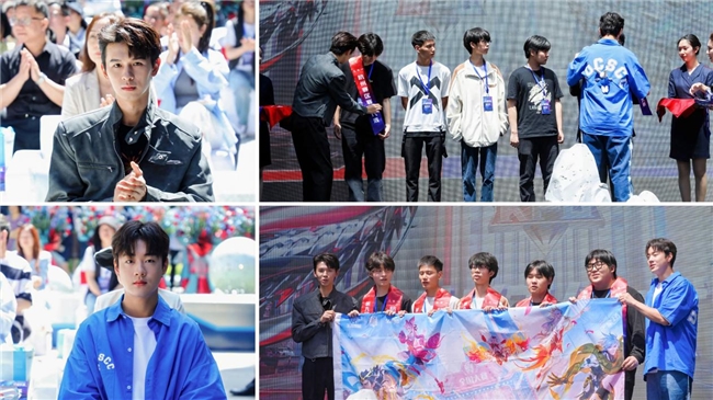 第九屆王者榮耀全國大賽——杭州賽區(qū)出征儀式(由2位種地吧少年為出征選手披上肩帶,并授予旗幟,出征儀式結束后,2位少年為選手加油打氣)
