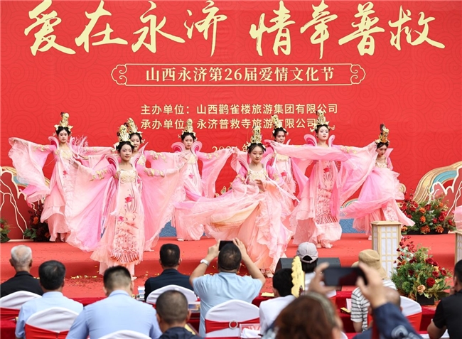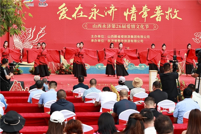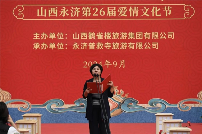 9月 21 日,普救寺迎來了第 26 屆愛情文化節(jié)的盛大開幕式。開場節(jié)目《蒲州花傘》瞬間將人們帶入了濃郁的地域風情之中。隨后,主持人隆重介紹到場領(lǐng)導(dǎo)嘉賓。永濟市政府黨組成員崔子龍發(fā)表了誠摯而熱情的致辭,表達了對愛情文化節(jié)的美好祝愿和對永濟文化旅游事業(yè)的殷切期望。市委宣傳部部長李朝霞宣布開幕,正式拉開了本次愛情文化節(jié)的精彩帷幕。