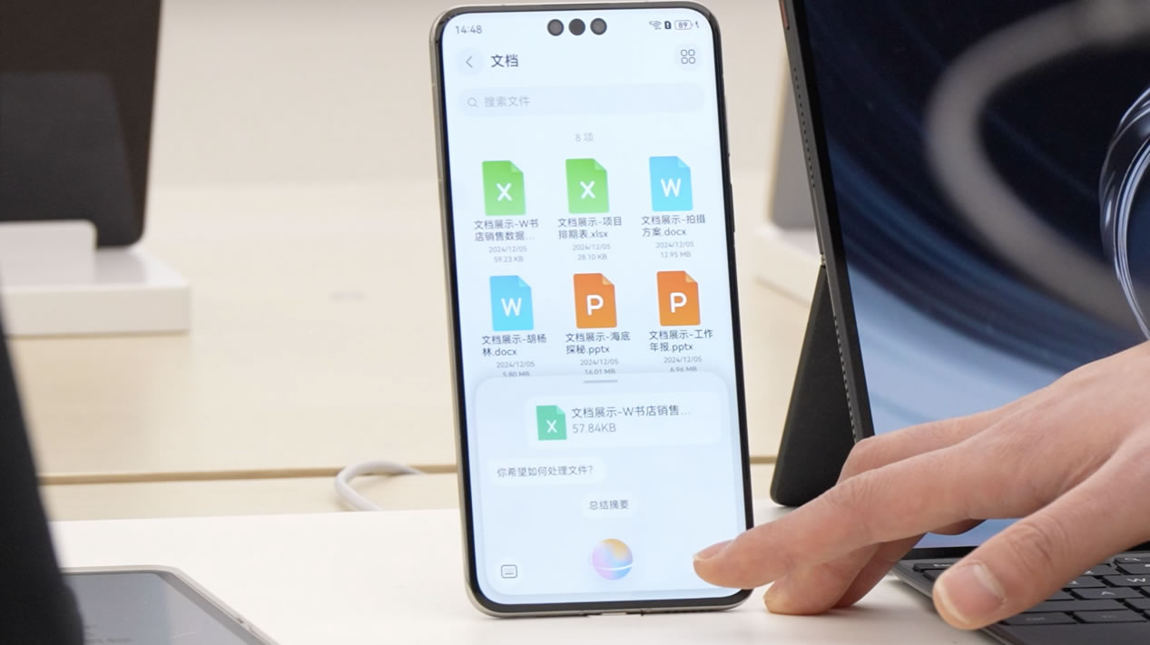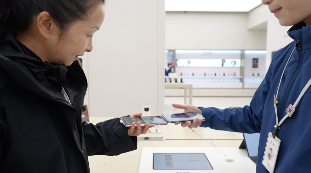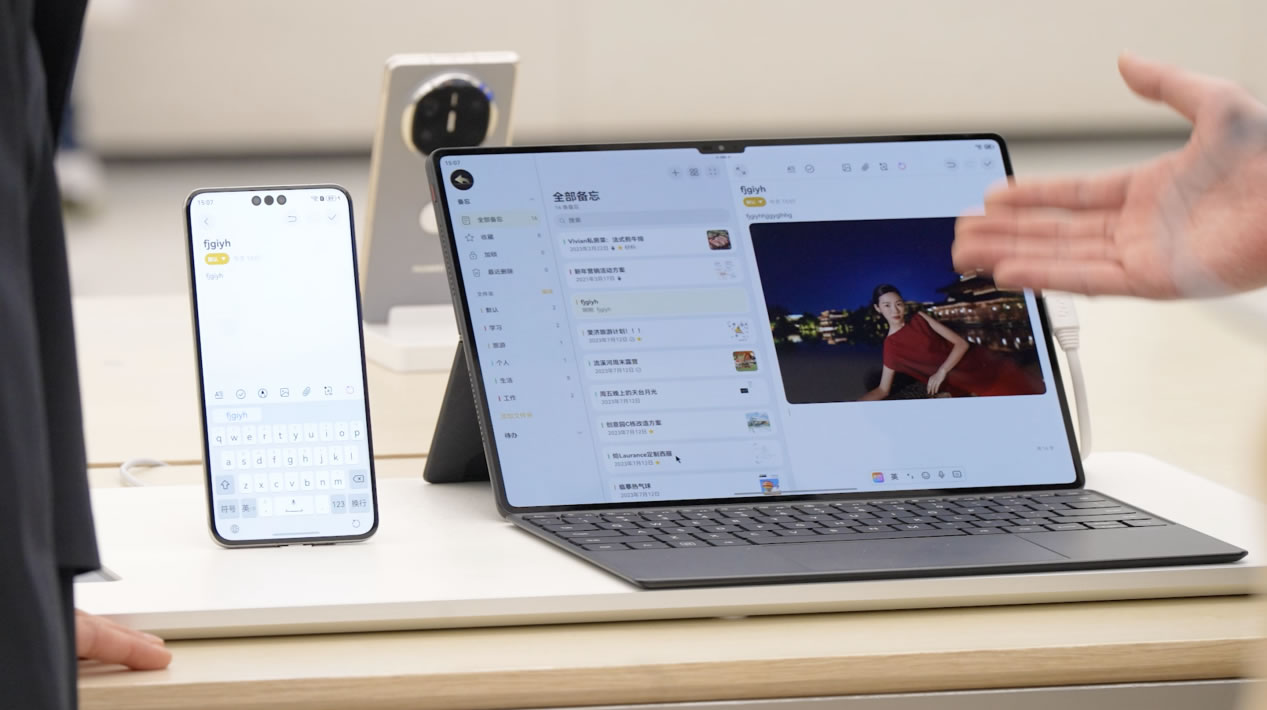 十一點,大家聚在一起頭腦風(fēng)暴。張晴把方案資料共享給同事,照片、視頻、文件,甚至正在觀看的網(wǎng)站,都可以通過「華為共享」直接傳輸。面對面辦公就更方便了,兩臺手機(jī)「碰一碰」,傳送門就出現(xiàn)了。