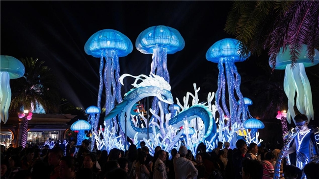 2025年1月29日,大年初一,乙巳蛇年,復(fù)星旅文·三亞亞特蘭蒂斯舉辦的以“龍蛇換守 七子賀歲”為主題的燈會嘉年華憑借多元化的創(chuàng)新夜間消費(fèi)場景,持續(xù)吸引游客,推動消費(fèi)熱潮。這場活動融合傳統(tǒng)與現(xiàn)代、藝術(shù)與科技,為游客帶來沉浸式的夜間文旅體驗,成為海南夜經(jīng)濟(jì)的新亮點(diǎn)。
