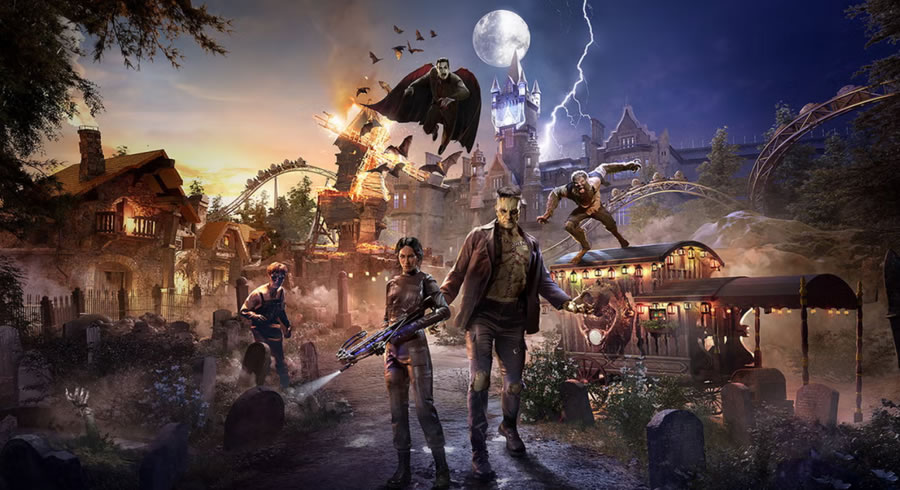 另一個園區(qū)黑暗宇宙(Dark Universe)則致敬環(huán)球經(jīng)典怪物電影,暗黑美學(xué)貫穿始終。標(biāo)志性設(shè)施 “德古拉的詛咒:自由墜落(Dracula’s Curse: Freefall Tower)” 結(jié)合全息投影與百米極速墜落,游客在驚悚劇情中與吸血鬼纏斗; “科學(xué)怪人:命運(yùn)實(shí)驗(yàn)室(Frankenstein’s Fate Lab)” 則為多結(jié)局互動劇場,觀眾通過手機(jī)APP投票決定人造人的善惡,觸發(fā)不同逃生路線。