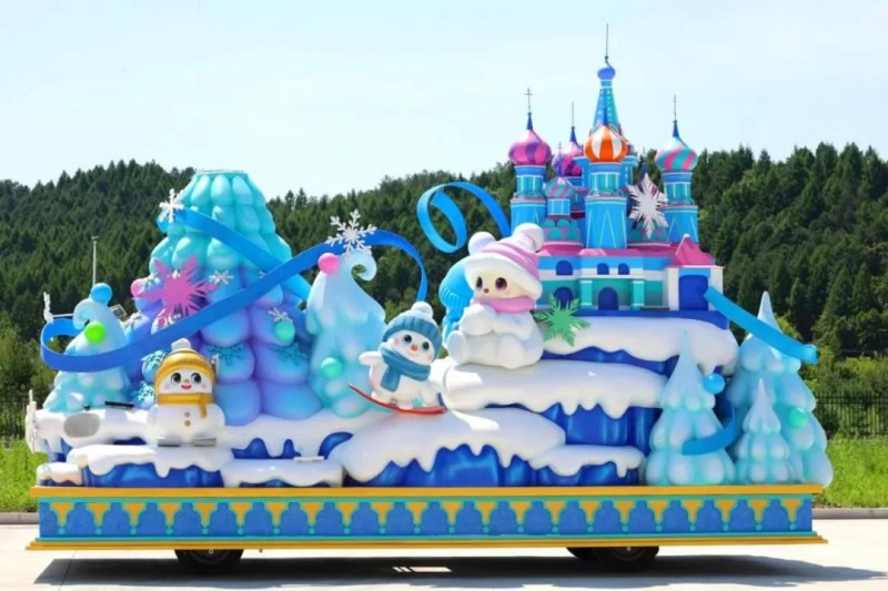 “冰雪綺夢花車”,巧妙融合了伊春作為“紅松故鄉(xiāng)”的生態(tài)特色與對俄開放的地緣優(yōu)勢。銀裝素裹的紅松林展現(xiàn)北國冰雪魅力,俄羅斯城堡造型呼應(yīng)伊春作為中俄邊境城市的開放姿態(tài)。雪人點綴其間營造歡樂氛圍,底部藍色水系裝飾象征黑龍江流域的聯(lián)通作用。花車通過冰雪童話場景,既展示了伊春冬季旅游的獨特吸引力,更傳遞出“以冰雪為媒,促開放合作”的發(fā)展理念,生動詮釋了伊春立足生態(tài)優(yōu)勢、深化對外合作、推動高質(zhì)量發(fā)展的戰(zhàn)略方向,誠邀八方賓客共赴冰雪之約、共享開放機遇。