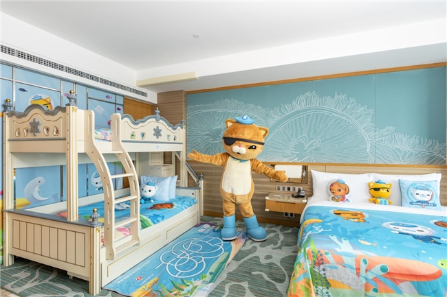 新推出的“海底小縱隊(duì)主題房”,以熱門(mén)動(dòng)畫(huà)片《海底小縱隊(duì)》為藍(lán)本,結(jié)合動(dòng)畫(huà)人物IP形象及海洋元素,設(shè)計(jì)了多種房型,為親子家庭打造了一個(gè)充滿(mǎn)童趣與探險(xiǎn)氛圍的親子空間。