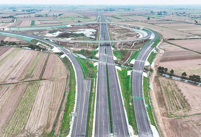 10月19日,蒙城縣境內(nèi)拍攝的附屬工程建設(shè)進(jìn)入尾聲的亳蒙高速板橋集樞紐。目前,亳(州)蒙(城)高速已完成總工程量的98%,計劃10月底交工驗收,11月全線通車。亳蒙高速建成后將使亳州蒙城兩地行車時間縮短至40分鐘。(胡衛(wèi)國 攝)