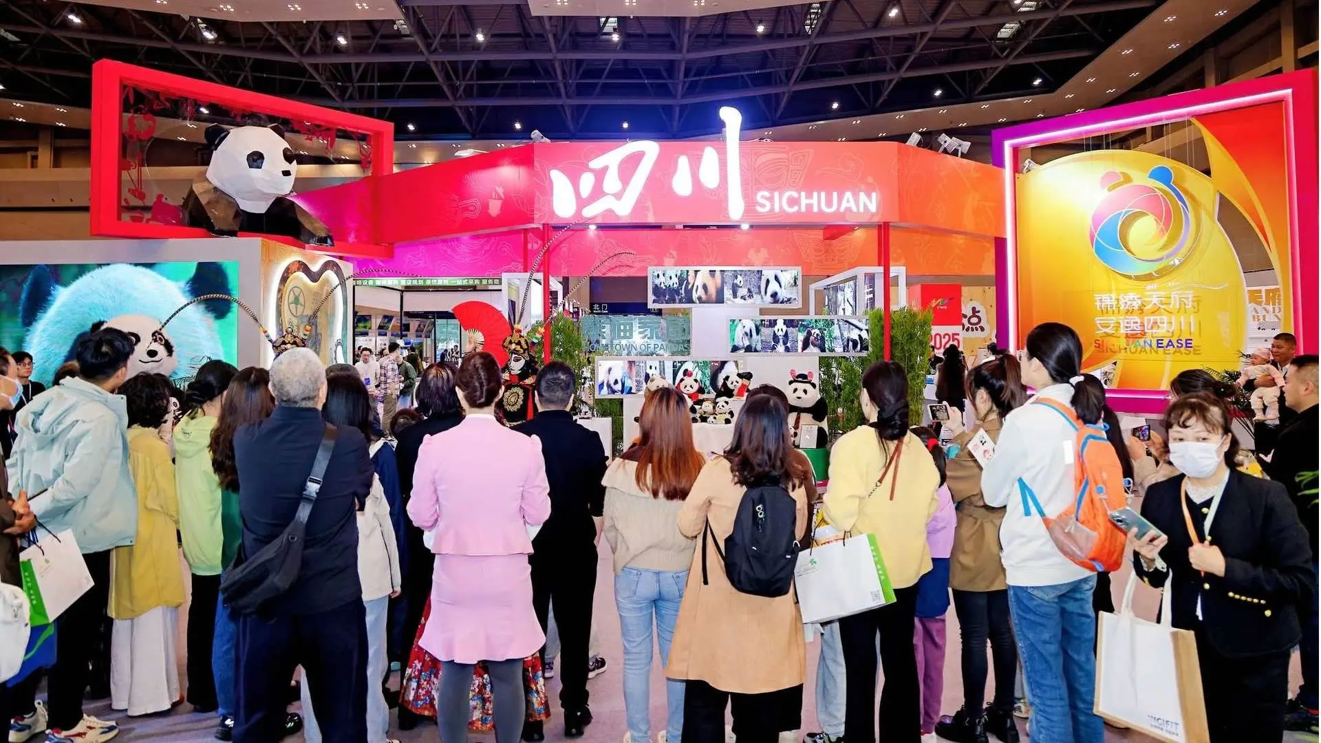 本次四川展臺位于展會核心區(qū)域,圍繞熊貓家園、古蜀文明、世界級旅游風(fēng)景道等主題打造展區(qū),F(xiàn)場不僅有諸葛羽扇綸巾杯套組等文創(chuàng)產(chǎn)品、缽缽雞等天府美食展示,宜賓面塑、長寧竹編等非遺活態(tài)體驗(yàn),還通過川劇變臉表演、“安逸熊貓”人偶巡游營造沉浸式氛圍。同時(shí),線下文旅咨詢區(qū)提供線路與政策解讀,百萬粉絲達(dá)人巡館直播、“安逸直播間”系列活動(dòng)同步開展,實(shí)現(xiàn)“線下體驗(yàn)+線上云看展”雙向聯(lián)動(dòng)。