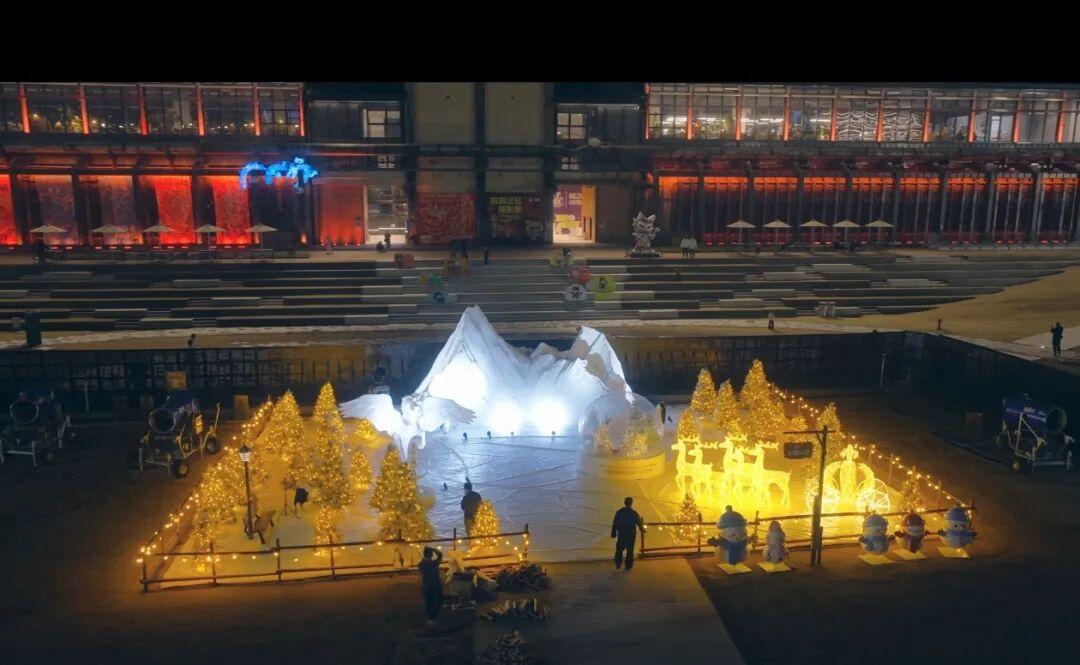 大運(yùn)河杭鋼公園冰雪嘉年華布景試調(diào)中。受訪者提供